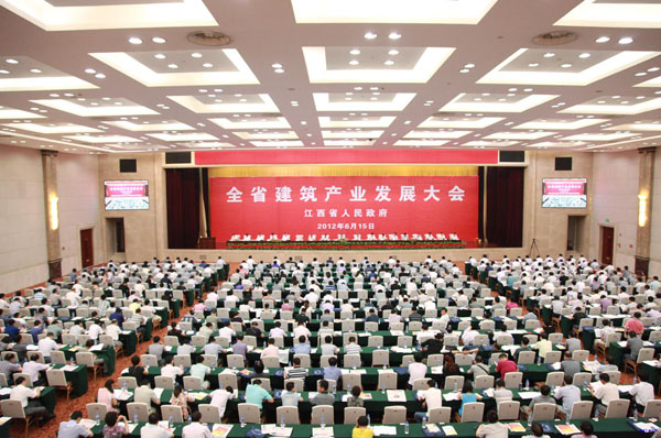 6月15日上午,江西省政府在南昌召開全省建筑產(chǎn)業(yè)發(fā)展大會,省政府朱虹副省長、蔡玉峰副秘書長,住房城鄉(xiāng)建設(shè)部總工程師陳重,建設(shè)廳領(lǐng)導(dǎo)張勇等出席了會議。省直有關(guān)單位負(fù)責(zé)人,各設(shè)區(qū)市、縣(市、區(qū))政府分管領(lǐng)導(dǎo)和建設(shè)局(建委)主要負(fù)責(zé)人,全省特、一級建筑企業(yè)和受表彰建筑企業(yè),部分勘察設(shè)計(jì)單位、監(jiān)理單位負(fù)責(zé)人近600人參加會議。