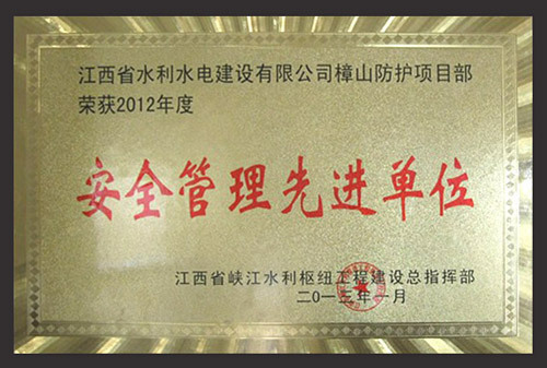 集團(tuán)資訊 2013年2月,江西省峽江水利樞紐工程建設(shè)總指揮部授予我公司樟山防護(hù)工程項(xiàng)目部“2012年度安全管理先進(jìn)單位”榮譽(yù)稱號,項(xiàng)目管理人員彭紅軍、鄧敏被評為峽江水利樞紐“安全生產(chǎn)先進(jìn)個(gè)人”。