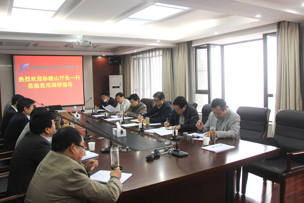 孫廳長一行與我公司總部中、高層管理人員進行了親切座談。會談一開始,孫廳長開門見山的指出,根據黨的十八大精神,為使江西水利工作更貼近群眾、貼近社會,轉變工作作風,更好地為建設小康社會服務,這次調研主要是聽取省水建公司作為以水利為主業的施工企業對水利公共服務工作的要求和建議,以及由省屬水利企業改制后闖市場、走天下的感想和體會,為下一步加快江西水利改革發展、加強水利市場管理提供參考和借鑒經驗。