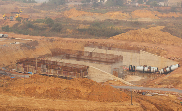 箱涵段全長720米,高8.65米,寬18米,分3孔,每孔凈高7.1米,凈寬5米,共60節(jié),是公司成立以來完成施工的最大結(jié)構(gòu)尺寸箱涵。按照傳統(tǒng)施工方法,每月僅能完成2~3倉砼澆筑,易受天氣影響,是該工程如期完成的關(guān)鍵節(jié)點,工期壓力極大。項目部集思廣益,開拓創(chuàng)新,首次在國內(nèi)項目范圍使用了鋼模臺車,每月可完成6倉砼澆筑。自2013年9月3日開始,經(jīng)過項目部全體施工人員的共同努力,至2014年11月23日下午完成箱涵砼工程全部砼澆筑,歷時446天,共計完成混凝土澆筑41000立方米,鋼筋制安2600噸,為公司類似項目施工積累了經(jīng)驗。