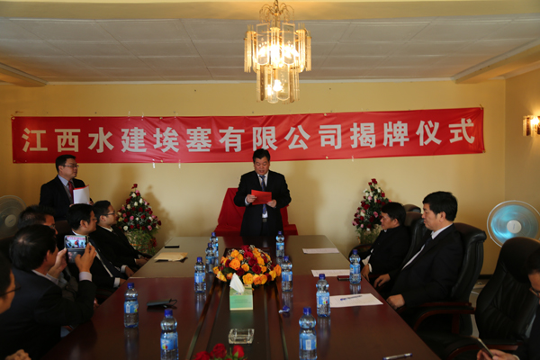 2015年4月26日埃塞當地時間上午10點,江西水建埃塞有限公司在埃塞舉行揭牌儀式。公司董事長王元旦、總經理徐洪良、副總經理兼海外公司執行董事張周平、副總經理兼海外公司總經理黃鄭民、副總經理王俊華等領導及在埃員工參加了揭牌儀式,公司董事長王元旦和埃塞有限公司總經理王毓平共同為埃塞公司揭牌并致辭。