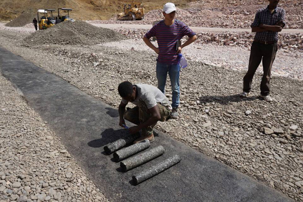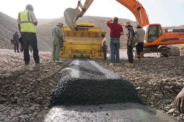 公司高度重視Wolkite瀝青混凝土芯墻的建設(shè),成立了以黃生寶為經(jīng)理的項(xiàng)目組領(lǐng)導(dǎo)班子,選派了一批技術(shù)過硬、經(jīng)驗(yàn)豐富、善于學(xué)習(xí)的技術(shù)和操作人員,并從國(guó)內(nèi)專門聘請(qǐng)從事該方面工作的專家親赴現(xiàn)場(chǎng)進(jìn)行技術(shù)指導(dǎo)和把關(guān)。在公司董事會(huì)的正確領(lǐng)導(dǎo)下,項(xiàng)目部全體成員緊緊圍繞著Wolkite瀝青混凝土芯墻項(xiàng)目全力施工。本著特事特辦的原則,國(guó)內(nèi)后勤組緊急采購(gòu)發(fā)送了一大批施工設(shè)備,為項(xiàng)目開好頭打下了堅(jiān)實(shí)的基礎(chǔ)。為了優(yōu)質(zhì)高效地完成任務(wù),項(xiàng)目組全體人員精誠(chéng)團(tuán)結(jié)、夙興夜寐,不計(jì)白天黑夜,不管分內(nèi)分外,取得的成果得到了業(yè)主和監(jiān)理的肯定。從制定施工方案和技術(shù)指標(biāo),到裝配實(shí)驗(yàn)儀器和施工設(shè)備,從悶熱的室內(nèi)配合比工作,到烈日炎炎下的現(xiàn)場(chǎng)施工,無不凝結(jié)著大家的智慧與汗水。