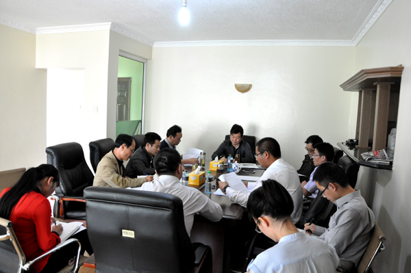 董事長(zhǎng)兼總經(jīng)理王元旦一行抵達(dá)我公司駐肯尼亞分公司辦事處后,立即召開(kāi)了海外工作會(huì)議。會(huì)上,在肯主要管理人員就市場(chǎng)開(kāi)發(fā)、工程建設(shè)等工作情況進(jìn)行了詳細(xì)匯報(bào),副總經(jīng)理徐洪良、黃鄭民分別進(jìn)行了發(fā)言。王總在會(huì)上做了總結(jié)講話,他對(duì)肯尼亞分公司取得的成績(jī)給予了充分肯定,對(duì)在肯發(fā)展形勢(shì)表示了充足的信心。首先,他指出,肯尼亞分公司是一支團(tuán)結(jié)、有戰(zhàn)斗隊(duì)的隊(duì)伍,要通過(guò)不斷學(xué)習(xí)挖潛,打造一支成學(xué)習(xí)型團(tuán)隊(duì)。其次,他要求肯尼亞分公司要高標(biāo)準(zhǔn)建好在建工程。通過(guò)做好雙河房地產(chǎn)項(xiàng)目展示公司實(shí)力,通過(guò)水電樞紐項(xiàng)目拓展公司發(fā)展方向,為公司海外發(fā)展戰(zhàn)略調(diào)整提供機(jī)會(huì),力爭(zhēng)在2~3年內(nèi)把肯分公司壯大,做成亮點(diǎn)。最后,他強(qiáng)調(diào)要高度重視海外項(xiàng)目稅務(wù)工作,他認(rèn)為這是海外項(xiàng)目最后營(yíng)利的關(guān)鍵,項(xiàng)目管理要與財(cái)務(wù)相結(jié)合,同時(shí)要處理好與合作伙伴關(guān)系。