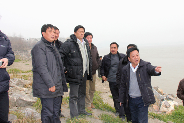 2011年1月14日,江西省水利廳廳長孫曉山在省河湖局、省水利規劃設計院相關領導、公司董事長總經理王元旦等的陪同下,前往我司承建的長江九江段棉船堤應急防滲工程視察工作。