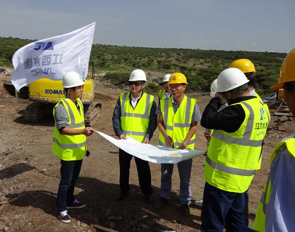 在視察埃塞DODOTA灌渠項目時,王元旦董事長重點(diǎn)察看了大壩圍堰和隧洞的施工情況,聽取了項目進(jìn)展情況匯報,并看望慰問一線員工。王元旦董事長對項目建設(shè)情況表示滿意,鼓勵項目部同志再接再厲,繼續(xù)嚴(yán)格把控每個環(huán)節(jié),牢固樹立安全責(zé)任意識,保質(zhì)保量完成各項任務(wù),向埃塞人民呈上一份滿意的答卷。