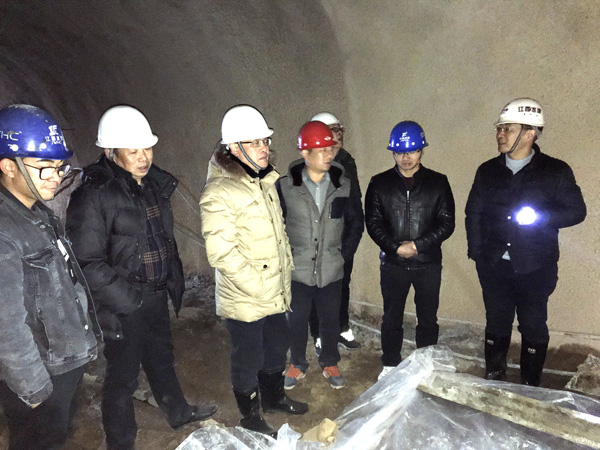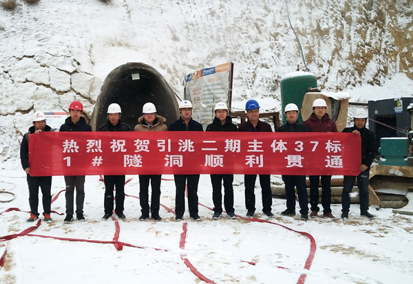期間,徐洪良總經(jīng)理一行與業(yè)主、設(shè)計、試驗檢測、監(jiān)理等單位的領(lǐng)導(dǎo)頂著鵝毛大雪,參加了37標(biāo)1#隧洞貫通儀式。