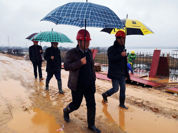 1月11日,由公司總工程師胡鴻煌、首席專家郭洪有、工程部副部長王海鵬組成的安全生產檢查組,冒雨來到禾河大道路堤結合改造工程施工2標段,進行安全生產、度汛安全檢查。