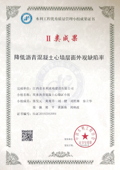 公司QC成果榮獲2019年度水利工程優(yōu)秀質(zhì)量管理小組優(yōu)秀成果獎(jiǎng)