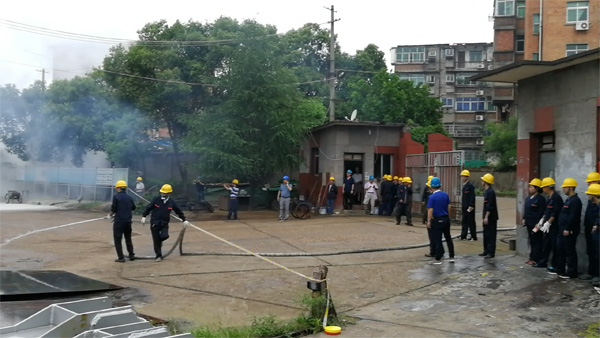 此次演練活動,得到了公司各級領導的高度重視,相關領導親臨現場進行了指導,機安公司廠區內全體員工參加演練。此次演練內容:1、火情報警;2、人員疏散;3、搶救物資;4、滅火器使用方法;5、連接室外消防給水滅火等。