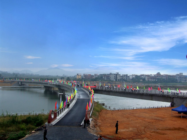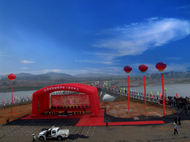三級抬水壩全長184.5m,寬度為13.6m,由22扇翻板門組成,為水力自動翻板閘門,既環(huán)保又節(jié)能;人行景觀橋呈“X”型,長196m,橋?qū)?~18.5m,因其設(shè)計(jì)新穎、外形獨(dú)特,是目前亞洲為數(shù)不多的幾座同類型的橋梁之一。
